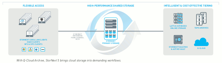 StorNext customers can use Q-Cloud Archive and Q-Cloud Vault in conjunction with Lattus extended online storage, including moving data from a Lattus object storage technology-based private cloud on premise to Q-Cloud.