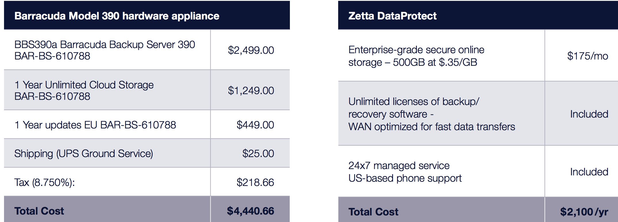 And, should a disaster occur, Zetta.net’s appliance free-solution avoids the delays inherent in waiting for a replacement appliance.