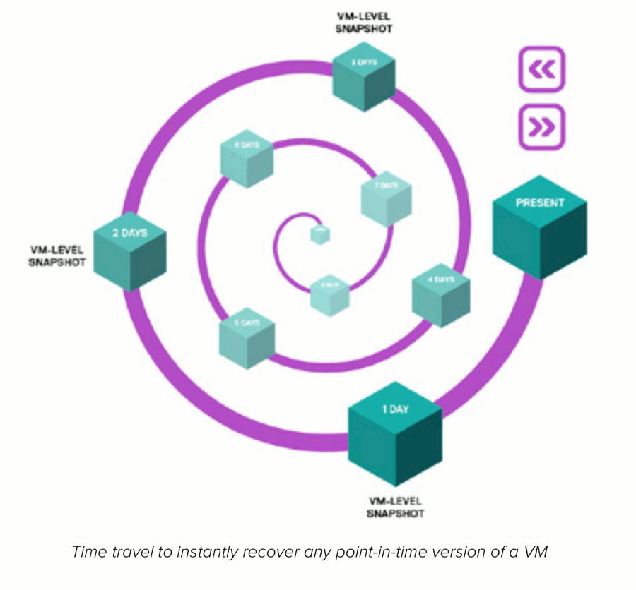 SyncVM. This product, based on patent-pending technology, allows the user to move back and forth between snapshots of an individual VM without losing other snapshots or performance history. Administrators can use this capability to update hundreds of ‘child’ VMs from a refreshed ‘master’ VM without physically moving data or reconfiguring the VM and/or storage. They can even automate the process with Tintri PowerShell or REST APIs.