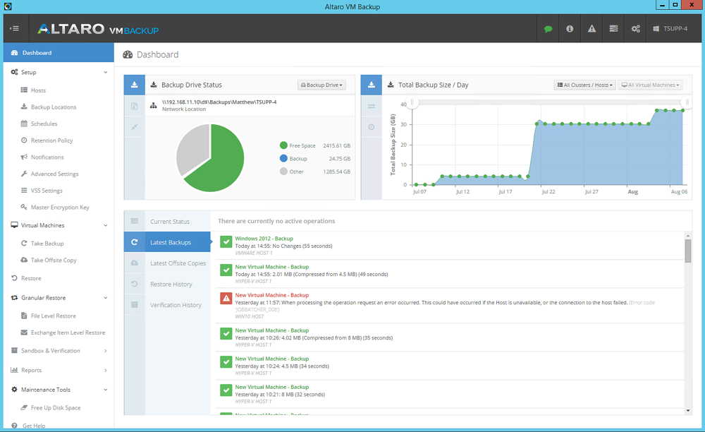 Besides the addition of VMware support, VM Backup has also seen the addition of a Central Management Console. Having the ability to manage backup and restore jobs across all Hyper-V and/or VMware hosts present in an environment means the product is a more scalable solution that also performs well in larger environments.
