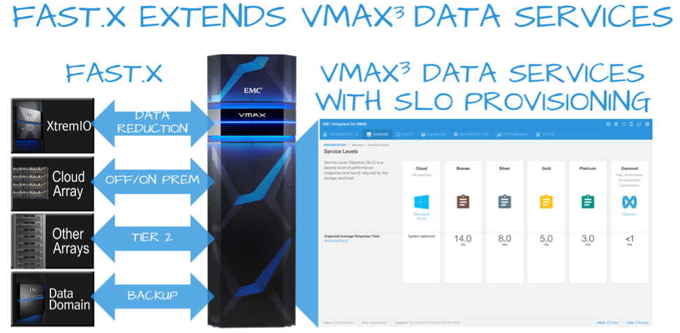 Tiering data to/from cloud VMAX and VNX storage platforms deliver simple, automated tiering to and from private and public clouds. The company is further extending the integration reach of VMAX with enhancements to its FAST.X tiering solution, enabling customers to achieve lower TCO by automatically tiering to public clouds from both company and non-company’s storage. Utilizing CloudArray technology and simply connecting a VMAX to a SAN and a network switch, customers can immediately connect the power of the cloud to their data centers and automate the allocation of data to storage targets on-premise and in the cloud, based on their own service level objectives.
