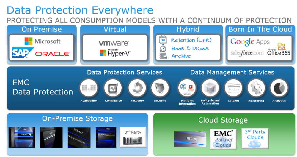 EMC Corporation announced the availability of a range of products and solutions designed to connect primary storage and data protection systems to private and public clouds.