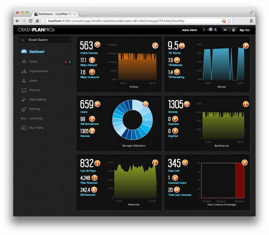CrashPlan 5.1 includes a web reporting app that allows administrators to create reports by device, user, organization or destination. The app gives customers better insight into device backup status and what devices have not been backed up recently or completely. The data can be exported from the app, enabling customers to develop their own custom graphs and reports.