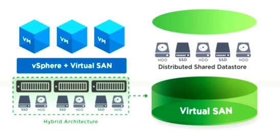Virtual SAN is designed to be the storage solution for vSphere VMs. The software enables core storage services for virtualized production environments, with greater performance, scalability, flexibility, and lower latency and cost. Featuring storage policy-based management, Virtual SAN shifts the management model for storage from the device to the application, enabling administrators to provision storage for applications in minutes. It is for a range of use cases including business-critical applications, VDI, ROBO, and test and development environments.