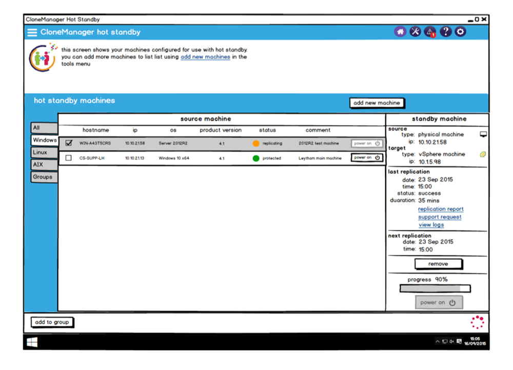 CloneManager_HotStandby-2It’s an update to company’s system migration solution, CloneManager. By introducing a real-time replication process, it allows users to create hot standbys of live systems that can be instantly activated in the event of a disaster.