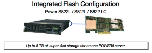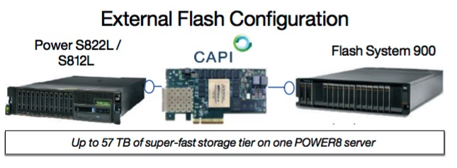IBM Data Engine for NoSQL offers a new edition with an integrated CAPI-Flash card: The new integrated flash configuration delivers a CAPI card with flash modules on the card that eliminates the need for an external flash subsystem, as is the case with the current offering.