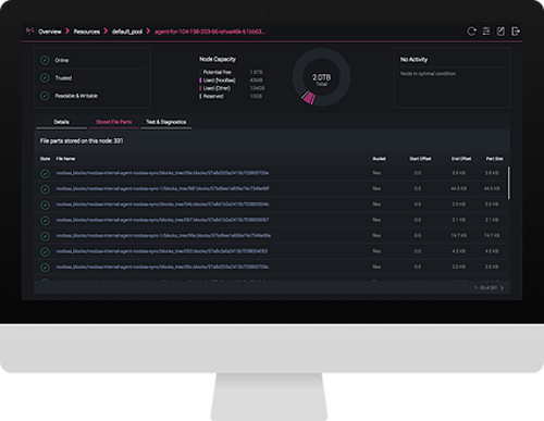 The company allows enterprises with storage capacity challenges to create a secure, high-performance storage solution across any compute resource available, including heterogeneous, cloud, and even shared hosts. Data placement across heterogeneous capacity resources is optimized through a novel control plane architecture using machine learning technologies.