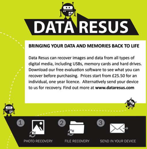 Data Resus, a service by Cardwave Services Ltd, uses software packages and hardware tools for recovering data from all types of media. These services provide customers with a ‘DIY’ downloadable recovery software, or as a custom service at company’s UK centre for sensitive, large, or difficult to recover data.