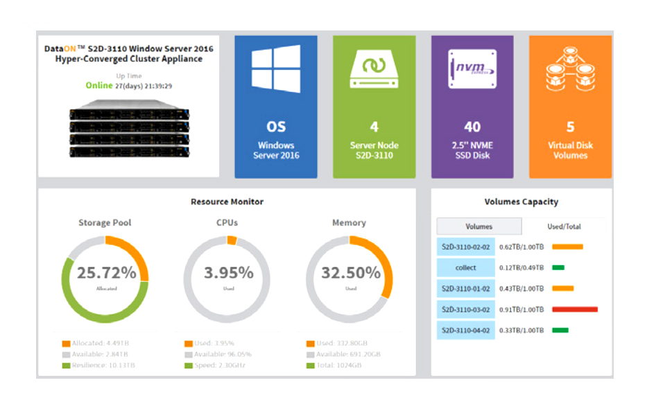 “Hyper-V running in Windows 2016 with Storage Spaces Direct provides an alternative to VMware and brings a new hyper-converged solution option for companies that have decided on Microsoft,” said Eric Slack, senior analyst, Evaluator Group. “DataON sets a new standard in the hyper-converged market by now providing their MUST visibility and management tool with their S2D-3000 family of hyper-converged appliances.“
