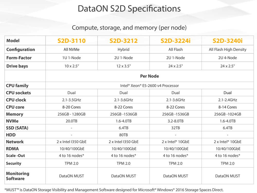 “Building on our mission to use the latest technology, EVGA continues to invest in IT data infrastructure using faster hardware with the latest Microsoft software. These new hyper-converged systems offer additional features and functions and most importantly increase reliability at an affordable cost,” said Joe Darwin, chief branding officer, EVGA Corporation. “The addition of the MUST visibility and monitoring tool with their S2D clusters really makes the DataON solution stand out in the HCCA marketplace.“