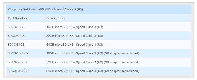 microSD UHS-I U3 offers performance shooting 4K video up to 30 frames per second and capturing footage at 120 frames per second in 1,080P HD. The card is rugged as it is waterproof, shock and vibration proof; and, with 16, 32 and 64GB capacities, it’s enough space to capture all of life’s experiences. It is backed by a lifetime warranty, free technical support and company’s reliability.