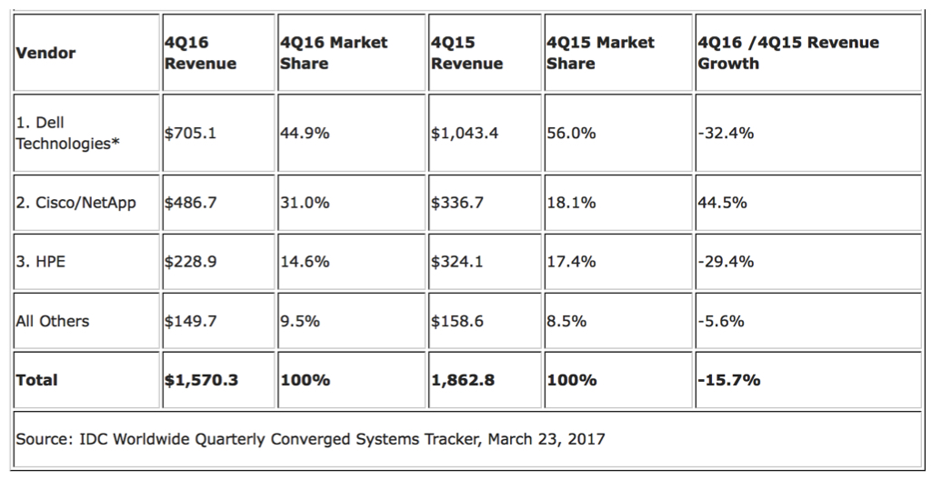 (Source: IDC Worldwide Quarterly Converged Systems Tracker, March 23, 2017)