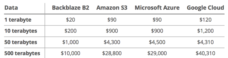 Not only is B2 storage 1/4th the price of Amazon S3, Google Cloud, or Azure, but our download pricing is now as little as 1/4th their price as well.