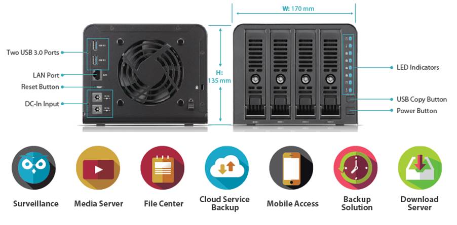 This four-bay NAS is stacked with features that provide a practical solution for SOHO and SMB users.