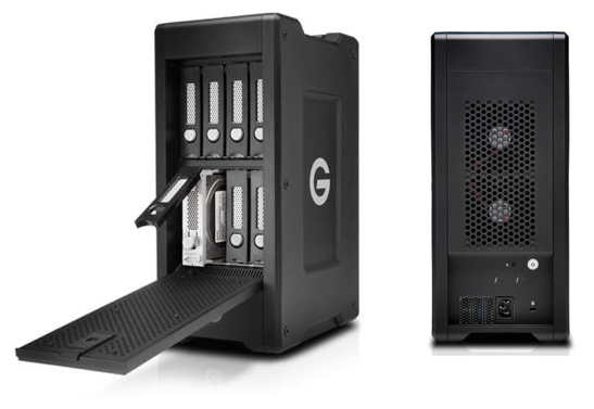 G-SPEED Shuttle XL with Thunderbolt 3 (available June in up to 80TB and next quarter with up to 96TB for $10,199.95 MSRP) – Able to handle demanding multi-stream workflows of 4K and beyond, both on location and in the studio, it offers hardware RAID-0, 1, 5, 6,10, and 50 configurations in an 8-bay transportable solution. Equipped with Ultrastar enterprise HDDs for reliability and transfer rates up to 2,000MB/s, creative professionals have the storage solution for video workflows and high-capacity storage.