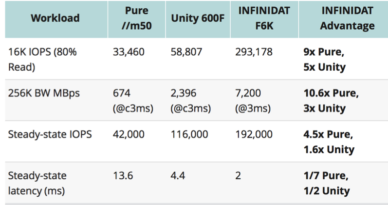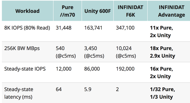 Infinidat Claims to Beat Pure Storage //m50 and EMC Unity 600F