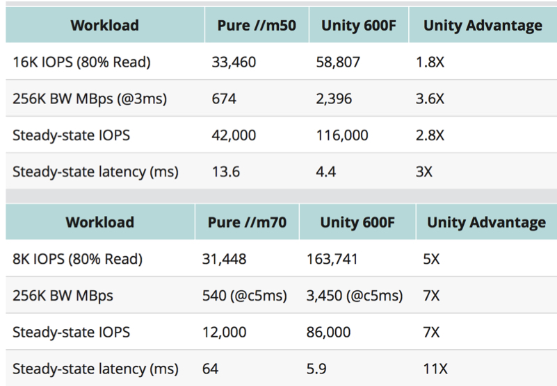 A few months ago, Pure cried foul when EMC posted a performance test showing Unity in a favorable light to FlashArray: