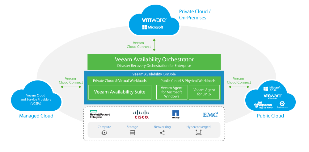 • Tier-1 applications and mission-critical workloads with new Veeam CDP, bringing recovery SLAs using continuous replication to the private or managed cloud;
