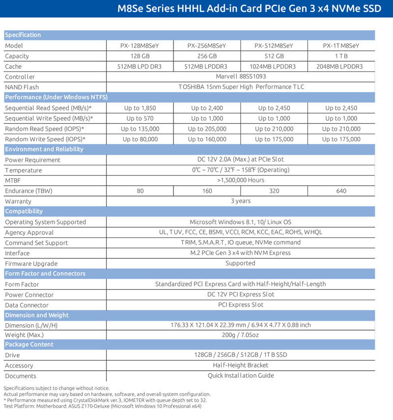 This is a Press Release edited by StorageNewsletter.com on June 7, 2017 at 2:19 pmPlextor (branded products are developed and sold by Lite-On Technology Corporation) unveils its M8Se NVMe SSD series.