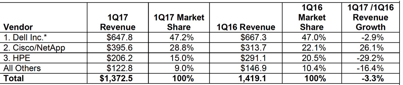 (Source: IDC Worldwide Quarterly Converged Systems Tracker, June 22, 2017)