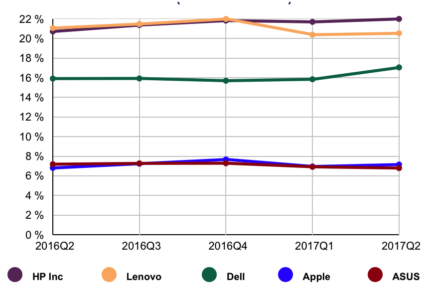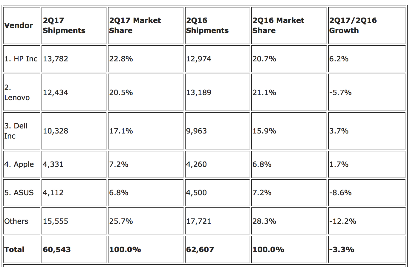 (Source: IDC Worldwide Quarterly Personal Computing Device Tracker, July 12, 2017)