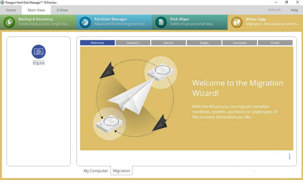 HDD Manager 16 Preview includes backup, recovery, and partitioning features for managing storage devices. The 16th version comes with a redesigned, intuitive UI, new handy scopes to represent feature sets, and features to accomplish system and data management tasks – even the most advanced ones.