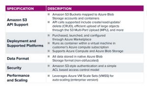 The company’s Connect enables any application that works with Amazon S3 to support Microsoft Azure Blob Storage without modification. It is implemented as a stateless container within a customer’s Azure subscription, providing scale-out performance in addition to advanced security innovations as data never leaves the user’s subscription.