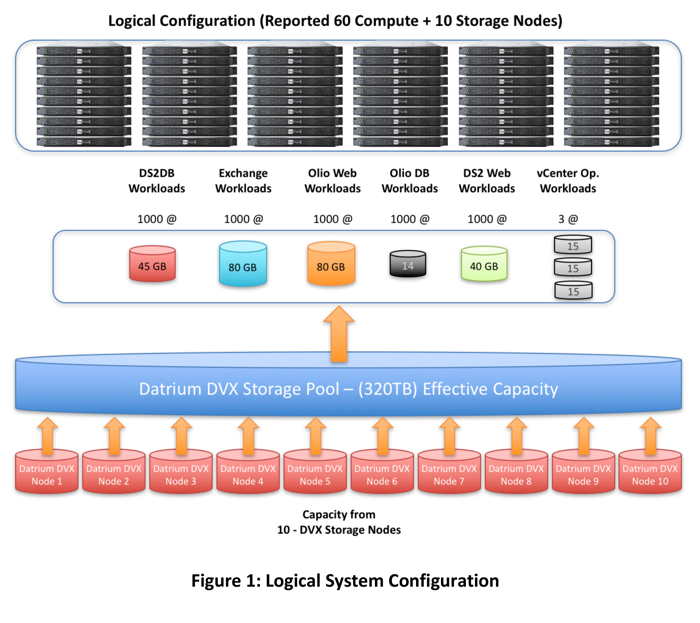 A cluster consisting of ten DVX data nodes along with 60 servers running DVX software was certified to support 8,000 IOmark-VM-HC virtual server workloads