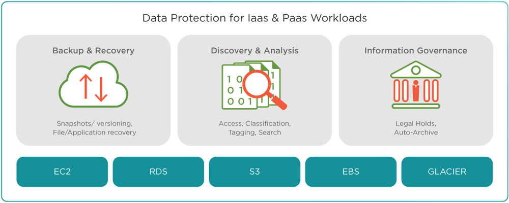 Amazon Web Services (AWS) continues to drive major adoption year over year with a CAGR of over 65% and the growth of multi-cloud adoption close to 85%. As a result, the ability to support workload mobility while protecting data in heterogeneous environments is critical. Traditional data protection systems have focused entirely on on-premises infrastructure throughout the last decade, yet rapid cloud adoption has created a new set of challenges requiring deeper analytics into data usage, managing its lifecycle and providing a more holistic protection model across on-premises and cloud sources.