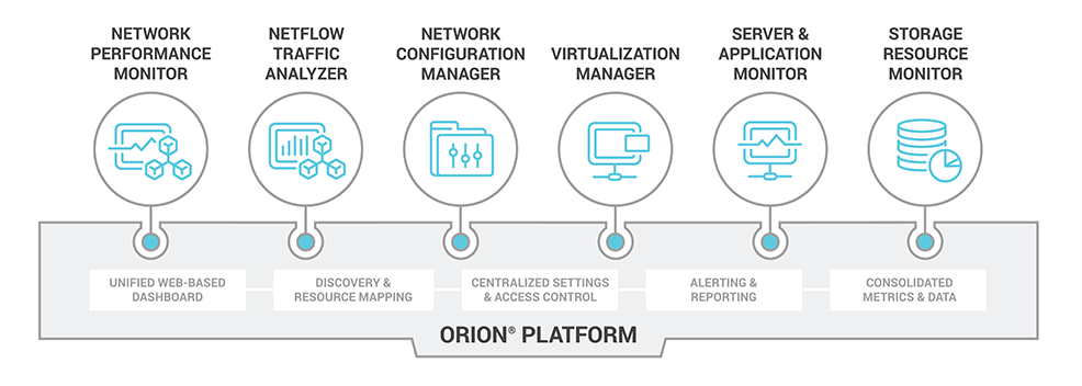 SRM’s data integration with other company’s products, including Virtualization Manager (VMAN) and Server and Application Monitor (SAM) through the Orion Platform, allows for end-to-end relationship mapping from application and virtualization through storage.