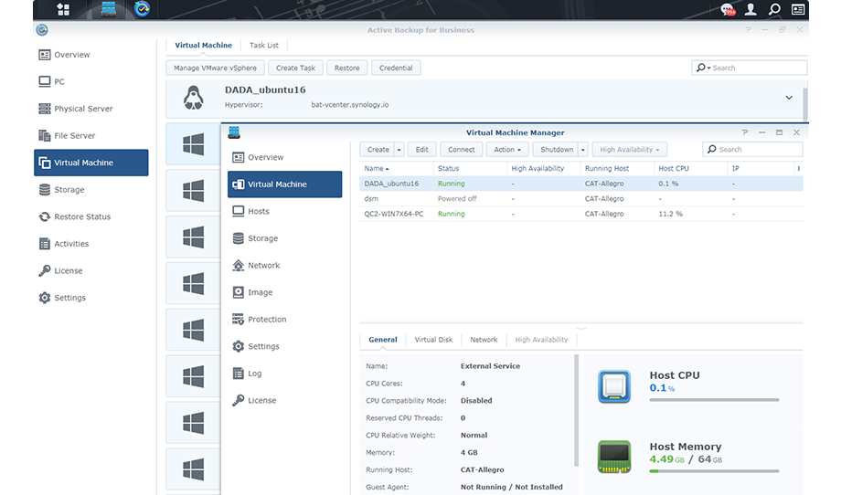 In contrast, Active Backup for Business integrates multiple technologies adopted by DiskStation Manager (DSM). For Btrf file system, the company has developed the ‘Global Deduplication’ function to reduce the required storage for backup. The integration with VM Manager allows NAS backups of physical servers or VMs to directly run on DSM, maximizing the availability of data and applications.