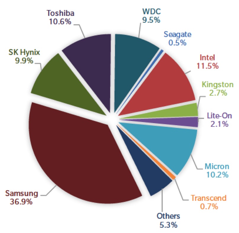 CQ2 ‘18 Total SSD Market Share, by Supplier, Units (in Million), Exabytes