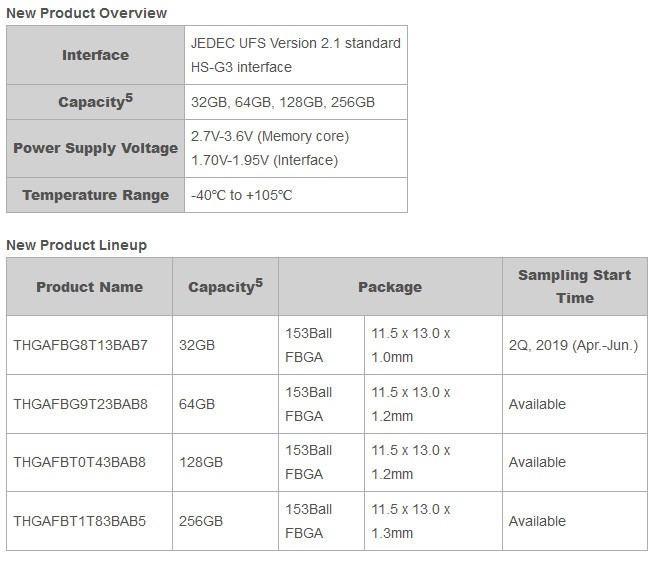 Toshiba Memory: Sampling Automotive JEDEC UFS V. 2.1 Embedded Memory Solutions With BiCS Flash 3D Memory