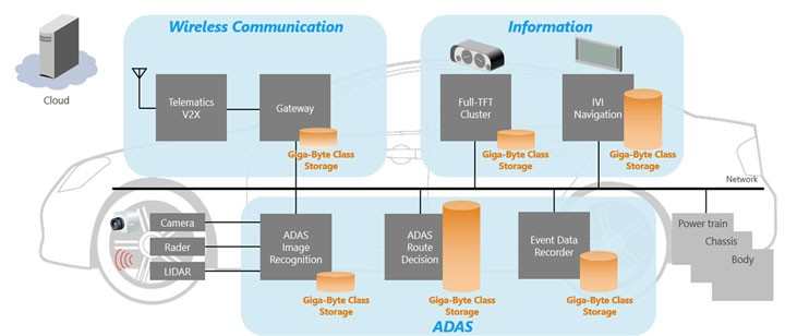 Technology advances in automotive information and entertainment systems and ADAS [6] related products for the realization of connected cars and autonomous vehicles will continue to push the storage demands in automotive applications ever higher. As these demands continue to grow, the company will retain a leadership position in the market by reinforcing its lineup of performance, high-capacity memory solutions targeting the sector.