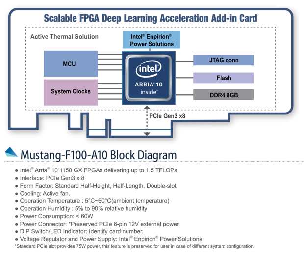 Half-height, Intel Arria 10 GX1150 FPGA, PCIe Gen3 x8 interface, power consumption lower than 60W
