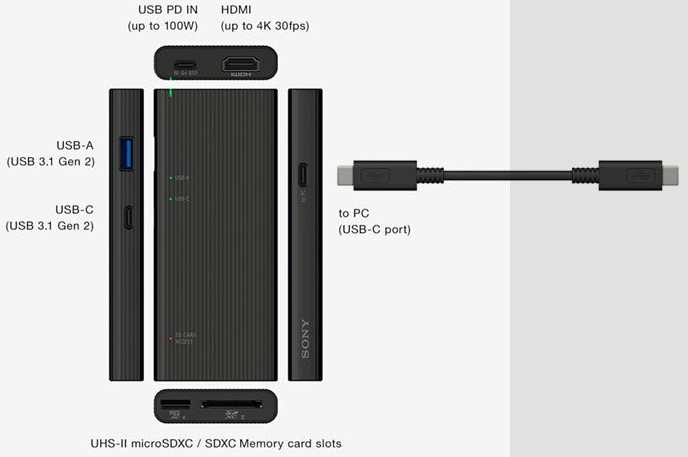 Sony MRW-S3 UHS-II SD/microSD Card Reader and USB Hub With USB 3.1 Gen 2