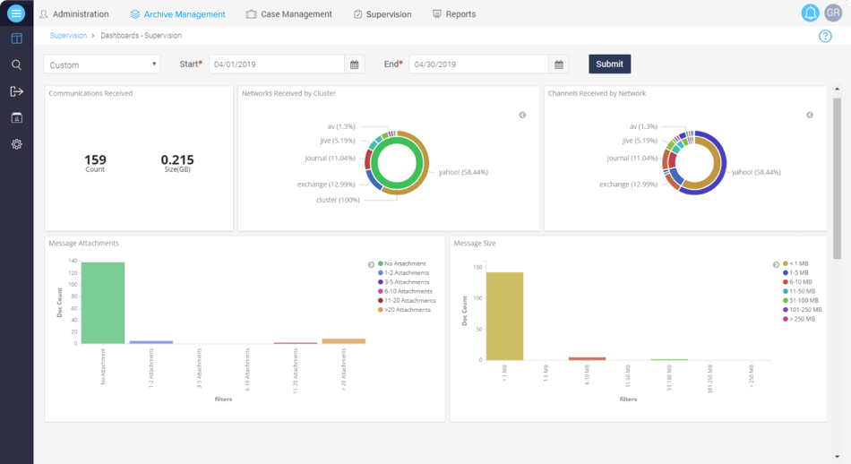 The cloud-native architecture of Enterprise Archive creates a secure and scalable platform across multiple cloud infrastructures (public and/or private) to meet the evolving needs of today’s global enterprises. Organizations can choose to deploy archiving, supervision and e-discovery services on the infrastructures that align with their corporate cloud strategies.