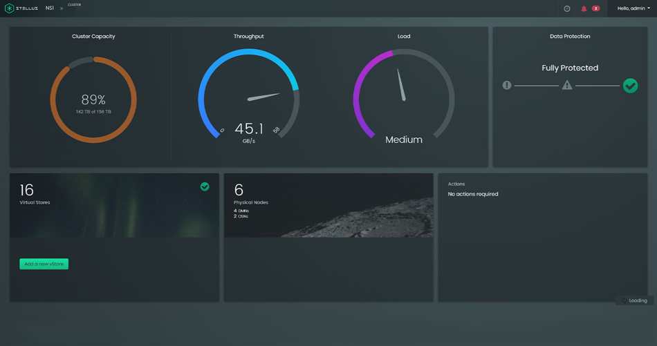 • Results: The Platform has a combined performance of up to 80GB/s aggregate bandwidth, and to a single Linux client Stellus achieved 2GB/s of sustained write throughput.
