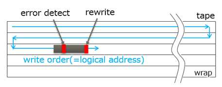 When writing to magnetic tape, write and error checking are performed in parallel, and when an error occurs, only the part of the error that occurred after the end of writing is automatically rewritten. Therefore, it is difficult to predict the physical location where a rewrite has finished from the change in file size. The physical location of each file is estimated by periodically measuring the head position after writing the file.