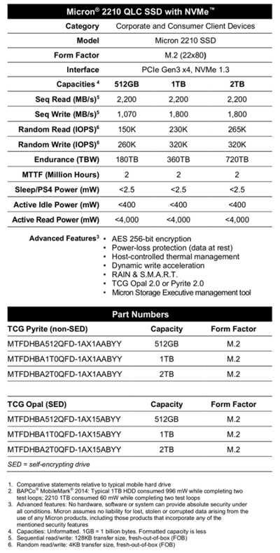 Micron 2300 and 2210 QLC M.2 Up to 2TB NVMe Client SSD With 96-Layer 3D NAND