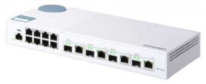 QSW-M408S: 12-port (4x10GbE SFP+ fiber ports, 8xGb RJ45 ports)