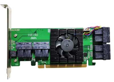 SSD7180 – 8x PCIe 3.0 x4 SFF-8643 ports (low profile), MSRP: $649