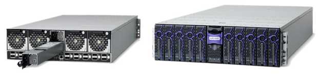 These fabric platforms provide performance density with up to 7.2 million IO/s per rack unit (RU) and 39GBps/RU with a raw capacity density of 205TB/RU.