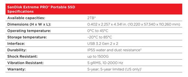 The SanDisk Extreme PRO portable SSD is available in 2TB (*) (MSRP of $499.99 USD), and is expected to ship in 1TB (*) later this holiday season.