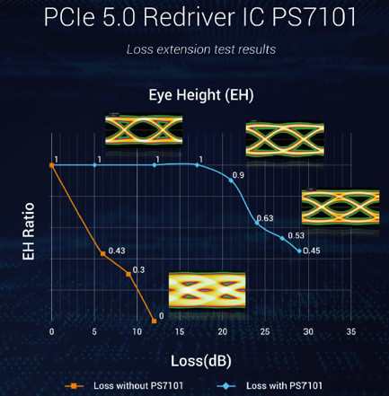 The company’s Redriver IC PS7101 reduces the compatibility problems that may occur when connecting between the CPU and the endpoints. The firm’s ‘Flip-Chip’ package design further reduces the signal reflection and crosstalk interference caused by the IC package and improves the ability of heat dissipation. PS7101 provides multi-band independent compensation, which can be easily adapted to different cable or PCB materials, allowing development partners the ability to tune their electrical signals to achieve the best compensation for loss.