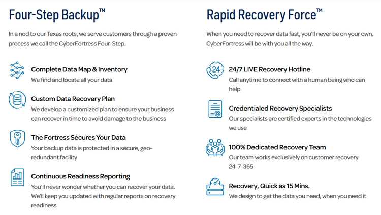 The synergy of these combined products, services and specialists enables CyberFortress to provide a level of security and speed. For customers, the burden of managing such a complex and critical function can be shifted to the credentialed backup and recovery specialists at the company.