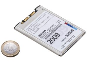 This flat 1.8-inch HDD from 2009 is equipped with a single magnetic disk that can store 320GB and is used in compact notebooks, among other things.
