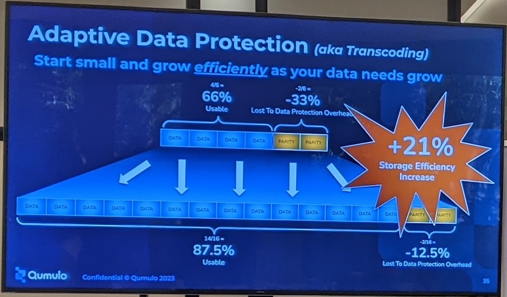 Reference in scale-out NAS for several years, it has made a clear shift to hybrid cloud to align their solution to users’ requirements and demands. It is supported by their Scale Anywhere approach. And even if it had some difficulties and decided to make some lay-offs to reach today approximately 350 employees, like others finally to adjust their operations, the revenue grew by 60% in the 2FH23. It is now cash positive. It also translates in market footprint with 3EB of licenses capacity in the past 12 months. Clearly the firm sees an acceleration with the exabyte trajectory that speaks for itself: it lasted 6.5 years to reach the 1EB, 1.5 years from the 1 to 2EB, and now 11 months to reach 3EB, it means 7x faster to reach 3EB from 2 than it took to touch 1EB a few years ago. The firm has 900 total customers WW in 20 countries managing 500 billion files. Multiplying verticals and use cases, this situation invites users to consider Qumulo more and more as an universal file storage solution. Cognacq-Jay case studies illustrated their outcome vs. some object storage point product. The team has made also some key developments with its own S3 API replacing the deprecated MinIO gateway, SMB multi-channel support, NFS 4.1 with Kerberos, Varonis integration for security or adaptive data protection to dynamically change the erasure coding N+M ratio. On the data protection side, the firm partner with classic vendors and picked Atempo Miria to facilitate migration and also Yuzuy, a German company expert on Qumulo. The pricing is very simple to understand and offers predictability to users. On Azure with Azure Native Qumulo, a managed service, 1TB costs $85 per month. We expect to see Nexus in the coming months for its capability to manage dispersed clusters on the edge, core and public cloud with some other interesting planned features. Following the recent HPE agreement for Greenlake with VAST Data, Ryan Farris, VP of products, confirmed that he didn’t see any impact and doesn’t expect some as HPE is still a strong ambassador of Qumulo.