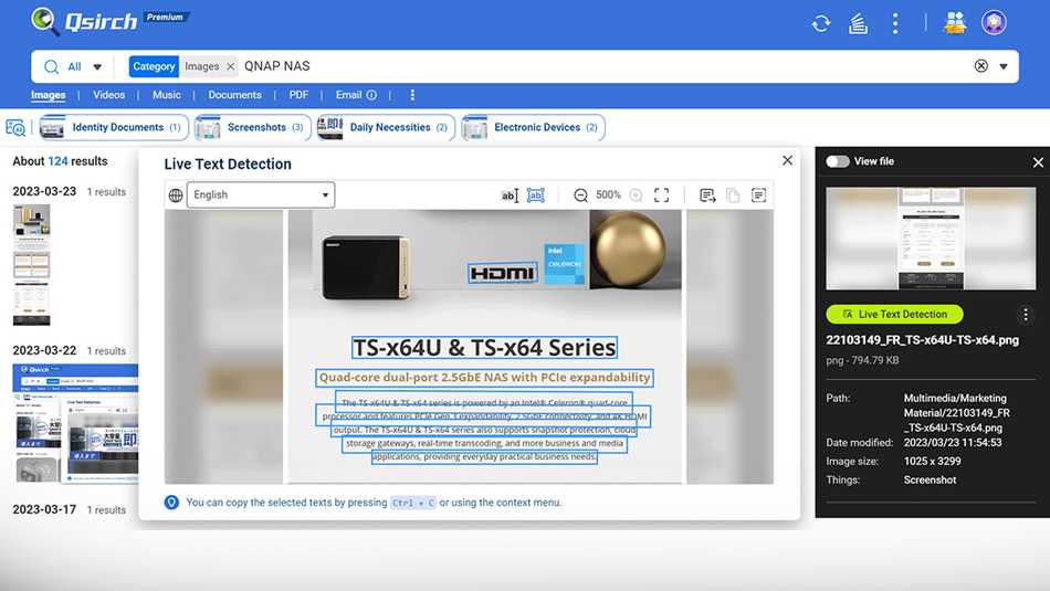 The TS-AI642 adopts the 64-bit ARM Cortex-A76 and Cortex-A55 8-core processor with 6 TOPS NPU. This helps accelerate AI image recognition, surveillance video analysis, and smart surveillance applications. Users can achieve a 200% performance boost in AI image recognition in QuMagie photo management (*), significant performance boosts in capturing text in images with AI OCR in Qsirch full-text search engine, and increase cameras for real-time analytics in QVR Face Insight facial recognition and the QVR Human people counting solution.