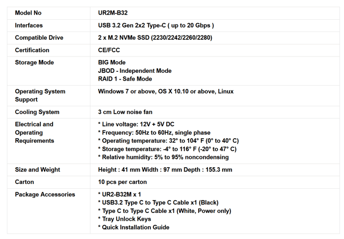 Whether you’re managing massive media files, editing on the fly, or simply need ultra-fast backup, this compact enclosure features with dual M.2 NVMe SSD slots, 20Gb transfer speeds, and a rugged aluminum construction that is built to withstand the pressure. Equipped with hot-swappable trays, intuitive LED indicators, and quiet adjustable fans, the UR2M-B32 is designed for optimal performance and usability, making it a trusted partner for content creators, IT professionals, and data-driven workflows.